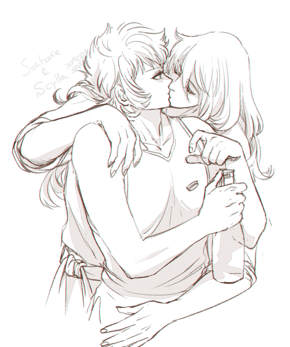 Also, as I was in charge of sketching the kissing page and I wanted to colour it too, you get to see both versions 😋