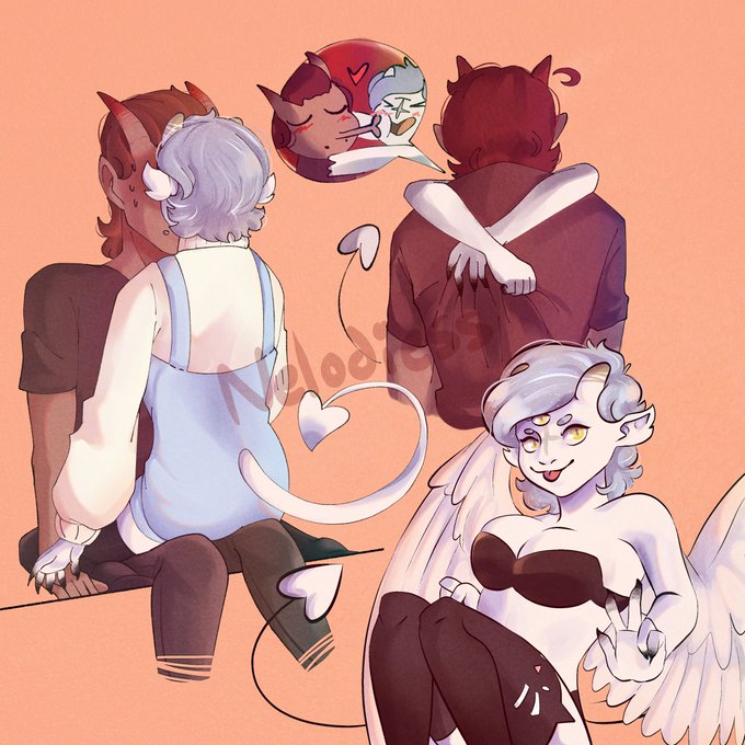 Posting it here because…why not. Lovey-dovey demons <3 #drawing #doodle #myartwork #couple #CLIPSTUDIOPAINT #digitalart #watercolor #demon