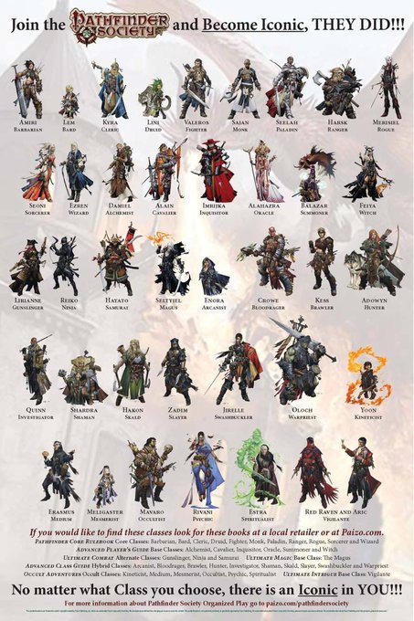 For further reference this is the entire iconics roster from 1st edition. 26 human-passing iconics, 10 of whom are POC. Up until now the only difference was exchanging a half-elf for a goblin.