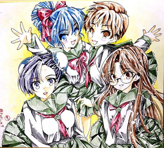 今さっきの「はっちゃけあやよさん」4人組ペン入れしたのを色塗りました。