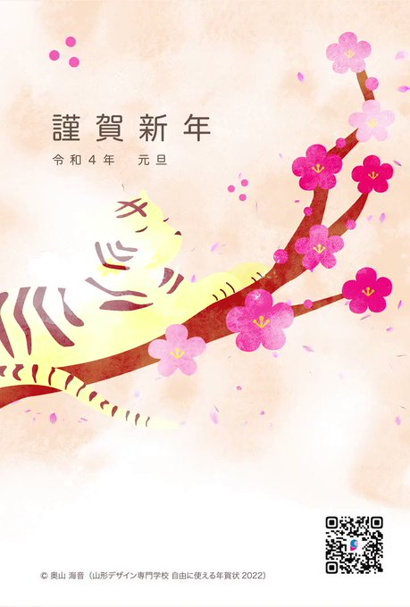 自身の年賀状デザインに動きをつけた作品です。金運上昇のシンボルである虎や七宝に、財や人との繋がりが豊かな年になりますようにという思いを込めています。