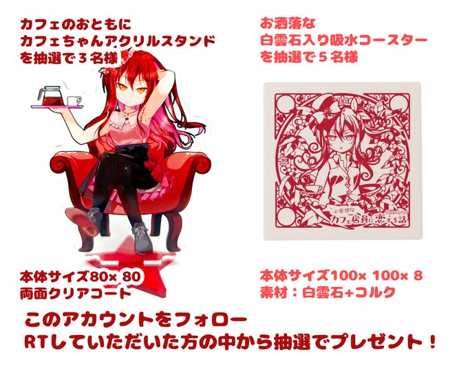 白雲石吸水コースター5名様、カフェちゃんアクリルスタンド3名様にプレゼント✨☕