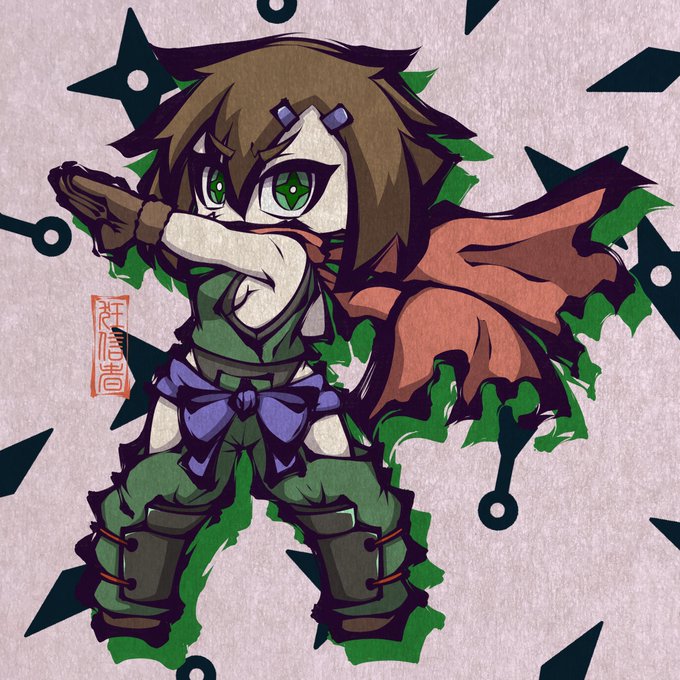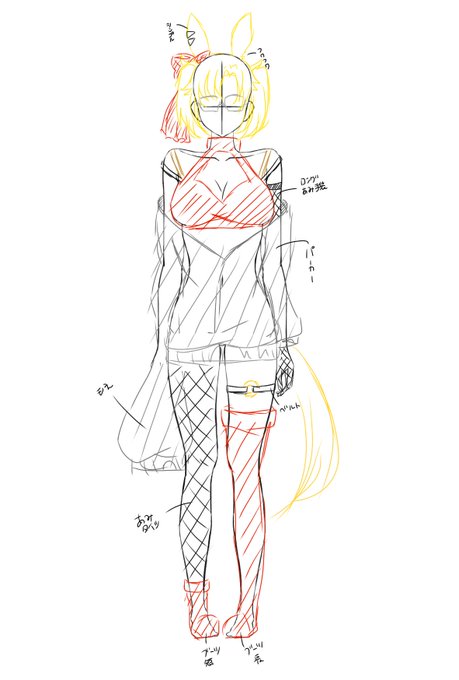 初期デザインで大きく出てるふたつのデザインが好きなので、髪にメッシュの入っている方を描いてみました。