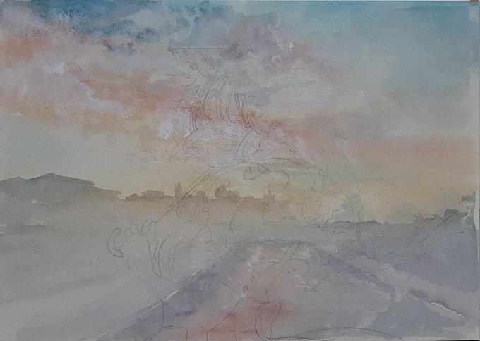 ラフでは、雨になってるけど、夕日になってます🙂