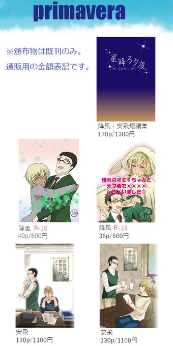 本垢でも宣伝~!7/29~30開催の降風WEBオンリー「星降る夜のweathercock」にサークル参加します!既刊の通販のみの予定ですが、一部完売していた本を再販します。あと何か新しいものが置けたらツリーにつなげます!よろしくお願いします!