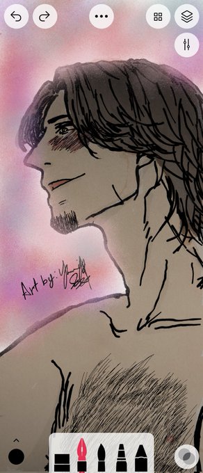 スマホで絵を描くのに1ヶ月かかる…今日は1日中絵を描いてたせいか…腰が割れるように痛い…お風呂…痛たたた…何となく描いた異性でした(^_^;)