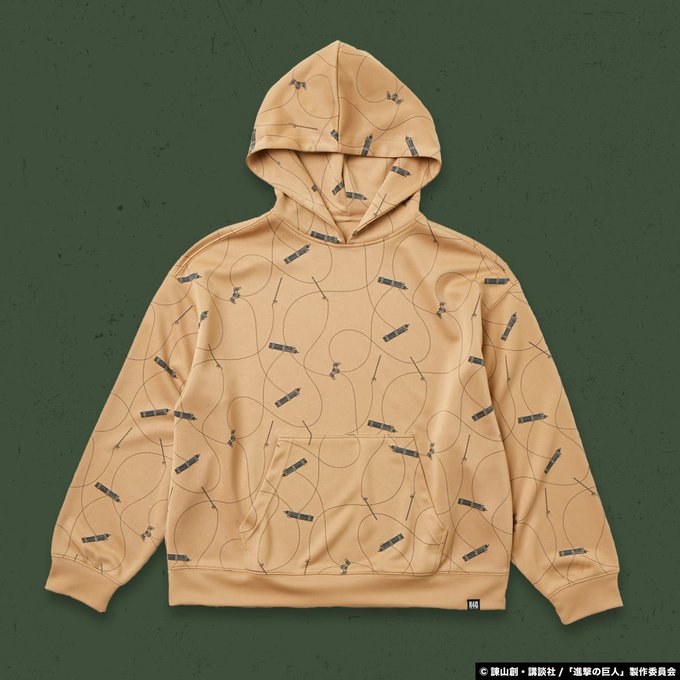 立体機動装置や超硬質ブレードの総柄パーカー。