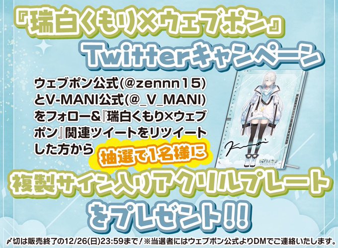 『リオとツグ×ウェブポン』が販売終了間近!ウェブポン限定グッズがハズレなしで必ずどれか当たる!12/19(日)23:59までの期間限定販売なのでお見逃しなく!直筆サイン入りアクリルプレートが当たるキャンペーン実施中!詳細・購入https://t.co/TJjybrrw2X #リオとツグ #ウェブポン #リオツグウェブポン