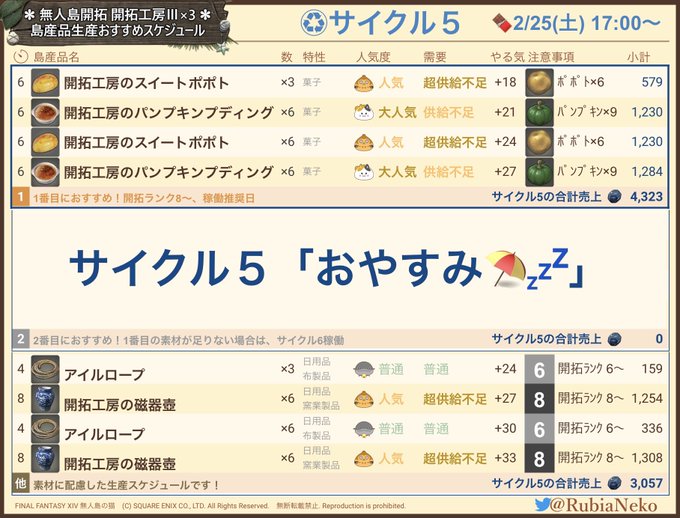 開拓工房の島産品貿易🌏生産スケジュール