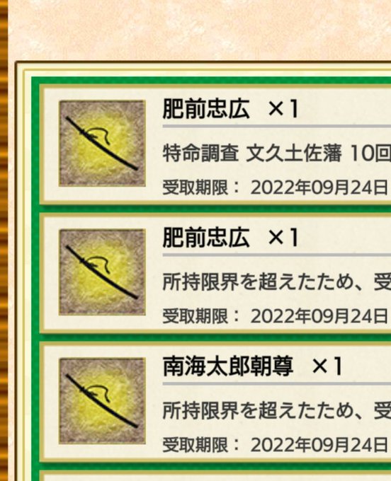 文久土佐藩、10回クリアで終了。あと数回行動できるけどやめとこ。10回目の報酬が肥前くんだし、ボスドロップで肥前くん出たし、南海先生も2回ドロップしたし、良い成果でした。