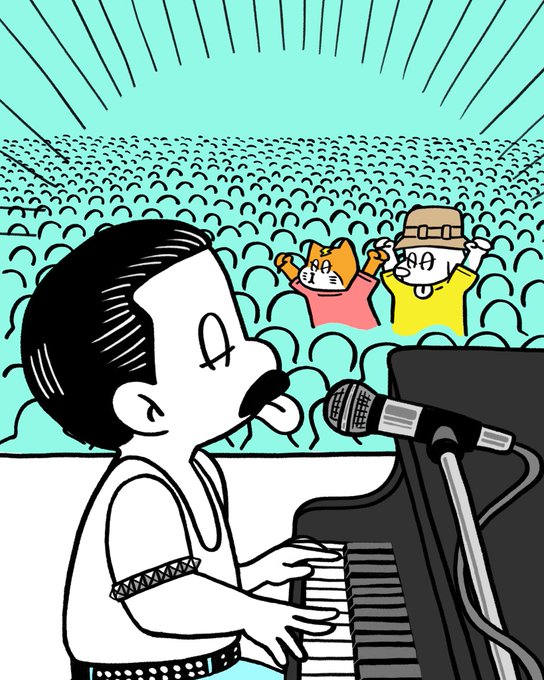 Completed scene. The first trial in the CLIP STUDIO. It was difficult, but possible) #queenband# Queen #bohemianrhapsody #freddiemercury #brianmay #rogertaylor #johndeacon #animation