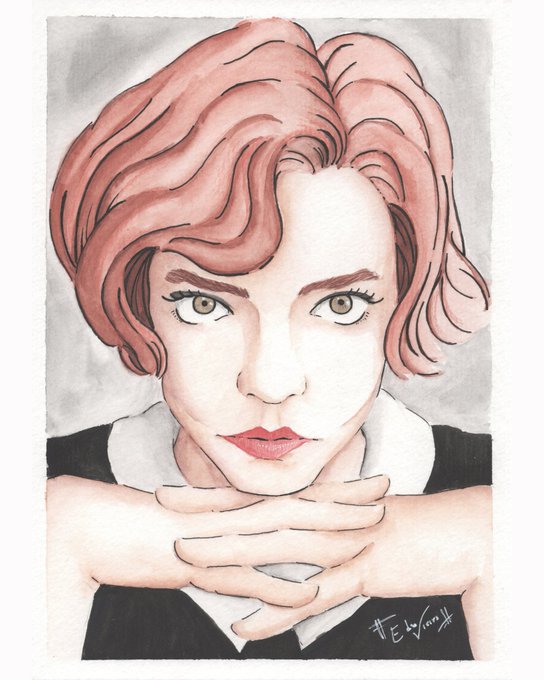Al fin termine esta #ilustración en honor a la serie #gambitodedama, fue bastante fácil de digerir y con una evolución de personaje, que en lo personal, encuentro reconfortante y sincera. Se las recomiendo un montón :) @anyataylorjoy @NetflixES #TheQueensGambit #ArtistOnTwitter