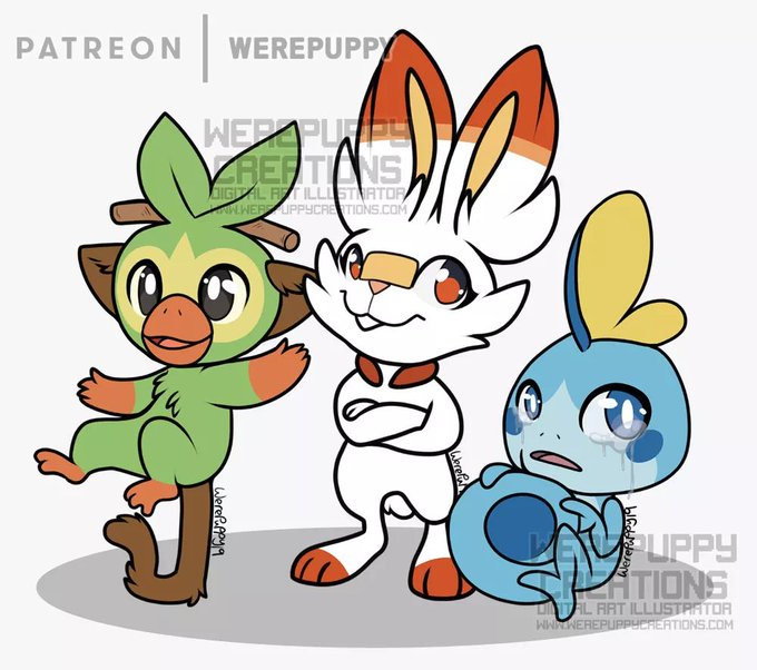 Featuring from left to right; Grookey, Scorbunny and Sobble.