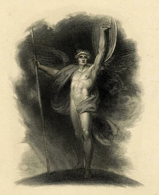 Detail of a frontispiece after Richard Westall for Paradise Lost, from The Poetical Works of John Milton, edited by Samuel Egerton Brydges