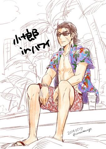小十郎の日に間に合わなかった…! ! 悲しかったので小十郎inハワイにしてみたけど、センスのないアロハシャツと柄パンでますます堅気に見えない… 視線の先には政宗様がいるはず きっと→(●ω`)