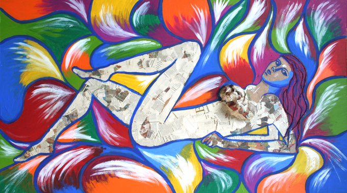 30x36inches. Oil, pastel/newspaper. 2014.-Jonathan Ikpoza ©Jonixstudios 2015. Av…