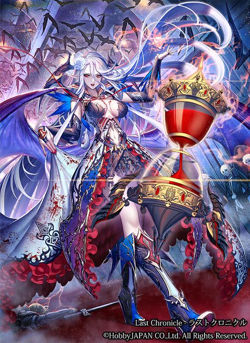本日発売のラストクロニクル第8弾「天空編Ⅱ」 にて【血の管理人 サーネリア】を描かせて頂いております。クロノレアでは前弾の夢魔女の占い師とリンクしております。どうぞよろしくお願いします! http://t.co/Epki3RXPBr
