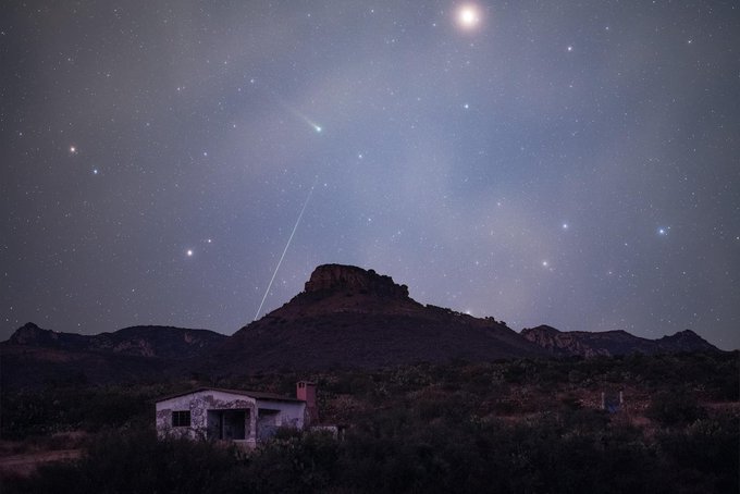 Geminid meteor crosses near Leonard, on a cold and cloudy night.