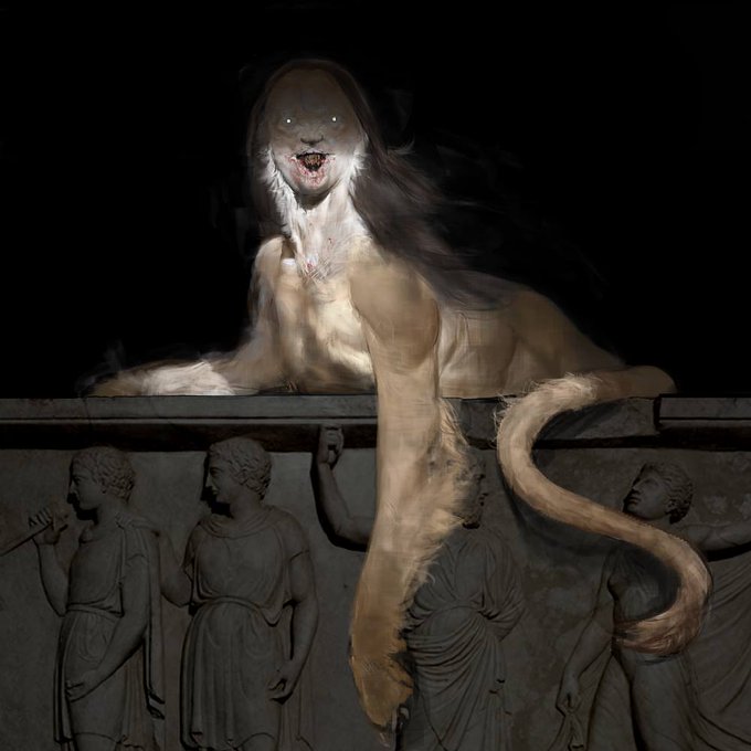 Early concept arts by Jeff Simpson depicting The Sphinx and Cerberus, created for #AssassinsCreed Odyssey, most of which were heavily altered or did not make it to the final game. For the full album: https://t.co/uBzJmqQP9c