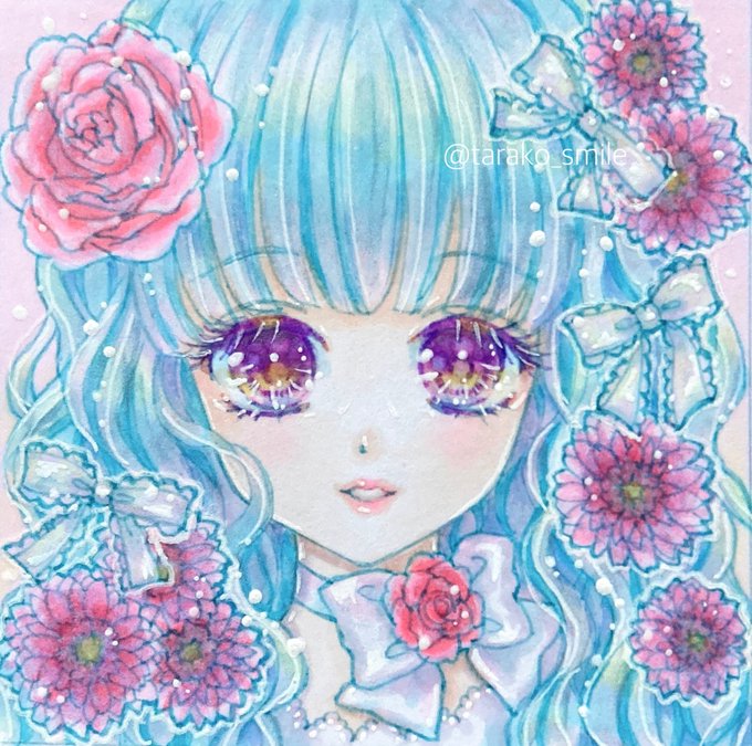 線画にマルチライナーターコイズを使って描いたお気に入りの子たち♡