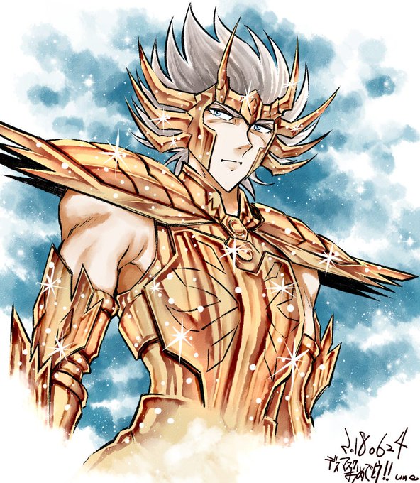 デっちゃんHPB! 課題とかバイトとか諸々忙しくて、ちゃんと描けなかったごめん(爆死)黄金の中では一番好きだよ!!神聖衣のフィギュアは宝物です…。