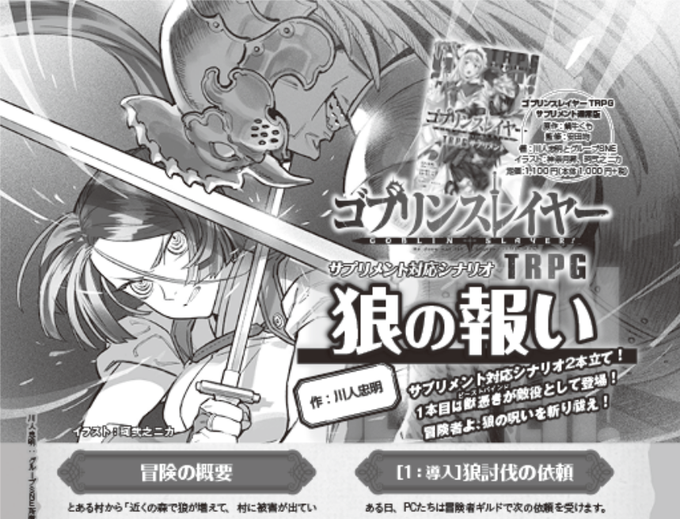 #GMウォーロック 2号は好評発売中。人気ライトノベル世界で、その世界の一般的な冒険者になって遊べる『ゴブリンスレイヤーTRPG』は、5月に発売されたサプリメントのデータを使った、新種族登場のものと、武技データ導入のもの、シナリオ2本をお届け!