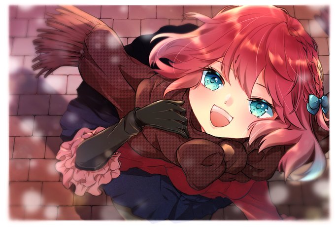 遅刻のバレンタイン風イラスト 赤髪描くの楽しいです https://t.co/nuJKZlhTc7
