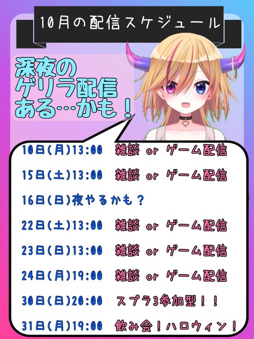10月の予定表だよ💜【訂正版】