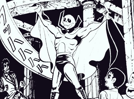 一峰大二さんの〖黄金バット〗 元々は戦前の紙芝居、戦後の絵物語を経て昭和40年代漫画、映画、テレビアニメ化とこどもたちの人気ものとして復活。