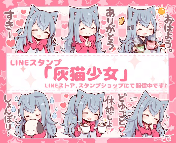 LINEスタンプ「灰猫少女」の配信を開始しました。挨拶や日常会話、リアクションが沢山入っています!RTよろしくお願いします(*´▽`*)!
