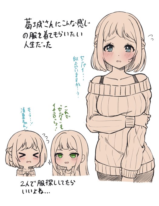 #いいねした人は私のイラストを自分の絵柄で描く で、出来るだけ肌面積多めで選出しました(ホンマか〜?)