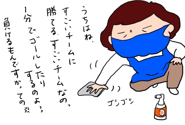 90分ハーフタイムなしで、社宅の掃除