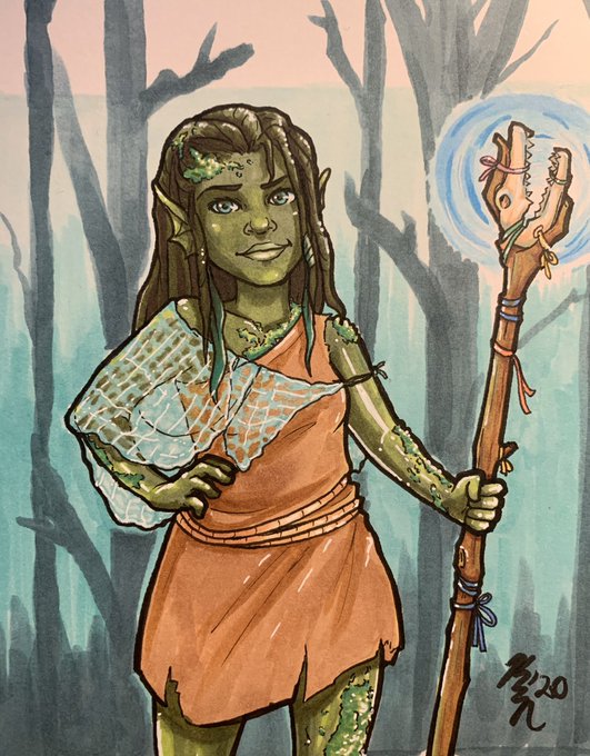 Got a commission to do someone’s swampy halfling water genasi. I am actually quite happy with how it turned out 😁 she’s covered in moss and dresses in random rags and nets.