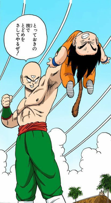(A Tenshinhan is a bald, closed-off man who grows emotionally through a tournament)