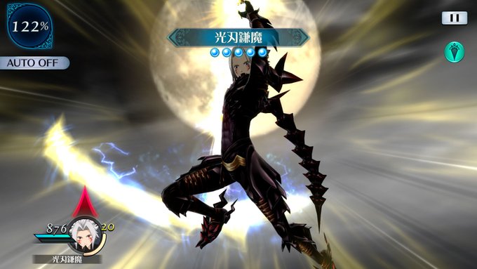 魔鏡技は光刃鎌魔、ザレイズでは目押ししなくても発動でき、月の美しさは健在です。