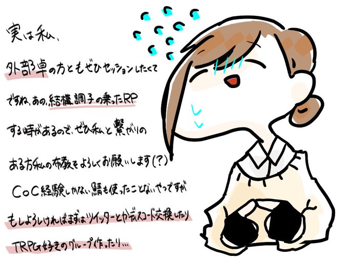 身内卓ばかりなので色んな方とセッションしたくてTRPG垢作りました!絵も描きます(♡˙︶˙♡)RTとふぁぼでお迎えしますね!!!