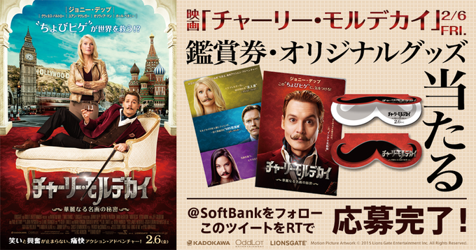 休日にのんびりしているアナタ!映画「チャーリー・モルデカイ」コラボのプレゼントには応募した? #ソフトバンクの学割が家族を救う! オリジナルな賞品をゲットするには、フォロー&リツイートするだけですよ♪ #SoftBank