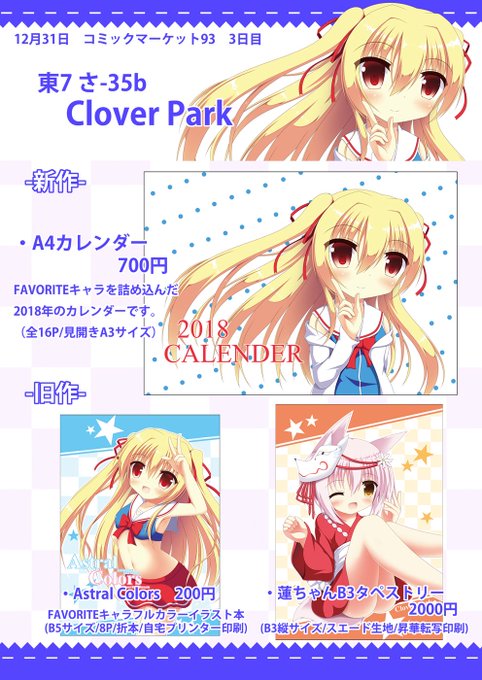 C93のお品書きできました!今回新作はFAVORITE作品のキャラ(真紅ちゃん多め?)を詰め込んだA4サイズ(見開きA3)のカレンダーになります。