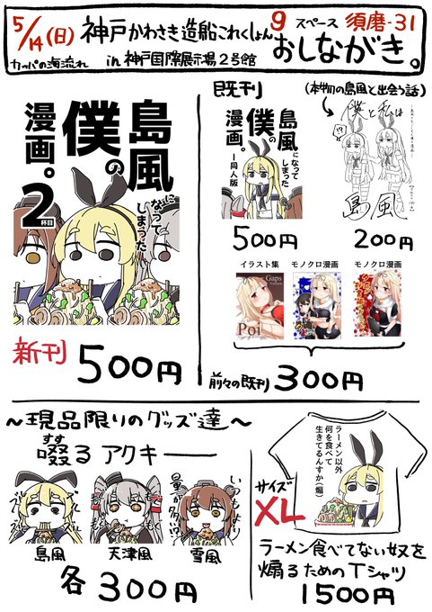 【告知】5/15に神戸国際展示場で開催される艦これオンリーイベント「神戸かわさき造船これくしょん9」のお品書き&ポスターです。