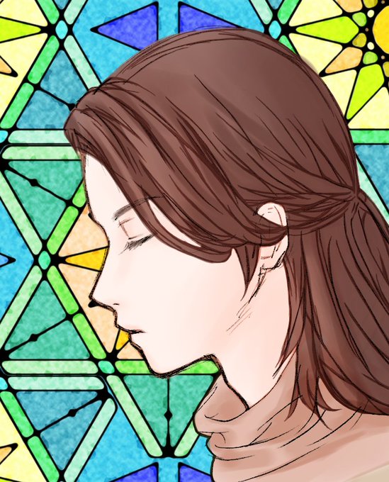 背景ステンドグラス風のを選んだらミュシャ風になったので趣味全開になった…