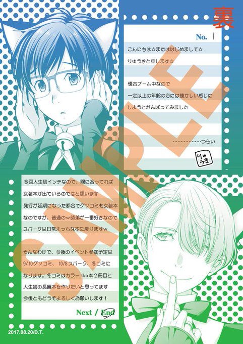ちゃんとまとめました。こんな感じで両面印刷のペーパーを8/20インテと9/10グッコミで配布します。グラデ面の文字なし版ネップリはちょっと考え中…カラー出力になるのでお高くてもよければ…