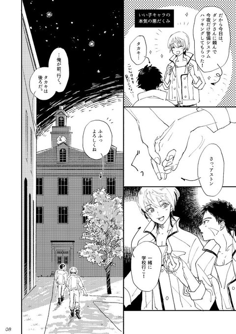 学校に行ったことのないアストンとタカキが、地球の夜の学校にこっそり忍び込むお話。リンク先につぎはぎサンプルあります〜よろしくお願いいたします。