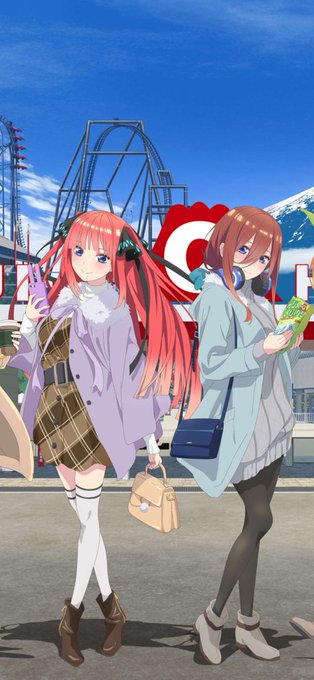 一番目は全員のアクスタ、二枚目は富士急二乃&三玖のフィギュアにゃん🎵
