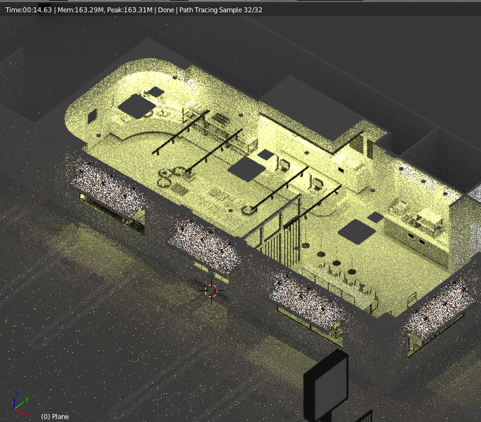 ベーカリーカフェBlenderでレンダリングしながら照明位置決め、レジカン周りも仕上げた。