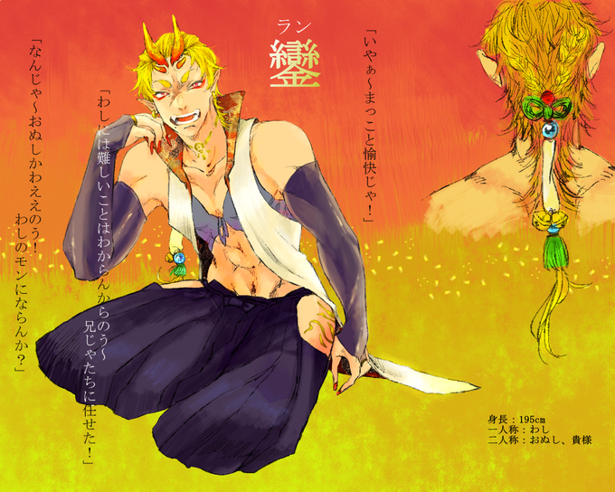 零月譚に(@zerotukitan )一人目参加失礼いたします おばかな鬼いさんです~らんらんって呼んでね! 契約、お友達や犬猿募集中です!CPはNLBLどちらでも可です! たくさん交流したいです〜!よろしくお願いします! #零月譚CS #零月譚_怪異 #零月鬼兄弟
