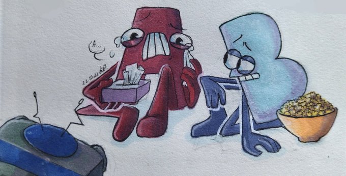 A and B watch TV, to be honest, A likes to watch melodramas. Meanwhile, B does not understand why his friend likes them, but sits quietly next to him and eats popcorn. Even for the sake of watching melodramas , they disturb T and V.