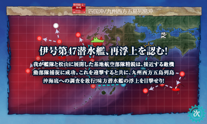 E3甲は石垣とめっちゃ悩んだけどやっぱり朝霜ちゃんに旗艦をお願いしました!まさかのサブグラーフにMVP持ってかれると思わなかったけどもw 海防艦が活躍できる海域はこれからも定期的にお願いしたいですね。