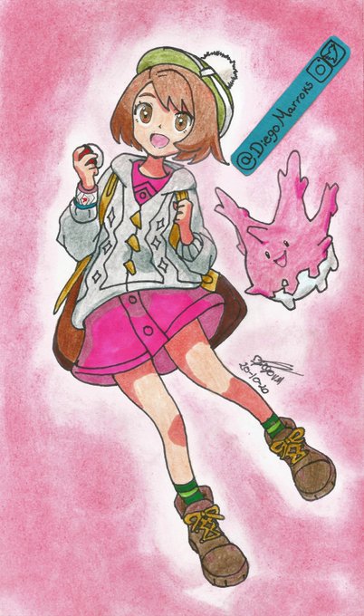 La verdad no quería solo dibujar a #Corsola así que lo dibuje junto con la protagonista de la región #Galar
