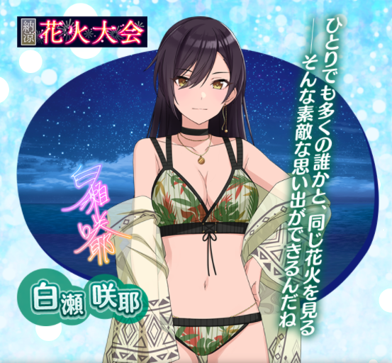 咲耶さんは花火大会で「みんなの視線を集めるなんて、妬けてしまうな」とか言いそうだなーとか思ってたけど、彼女にとって嫉妬は相手を褒めるために使う言葉だったのだよね。本人のコメント聞いて反省した。