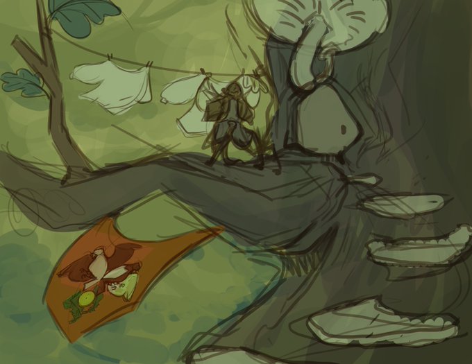 anyways! More #MisadventureMay with Pip! He's part of the Dandelion Society! A tightknight group of folks who travel all over, ride birds, and share dandelion wine/dandelion related sweets on occasion